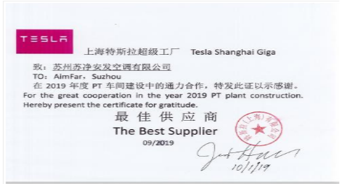 經(jīng)過兩個(gè)半月的辛苦付出,現(xiàn)已成功進(jìn)入試生產(chǎn)階段。高效的對(duì)接、高質(zhì)的施工、高能的團(tuán)隊(duì)得到了用戶的一致好評(píng),特斯拉公司特授予最佳供應(yīng)商和最佳項(xiàng)目經(jīng)理榮譽(yù)稱號(hào)。