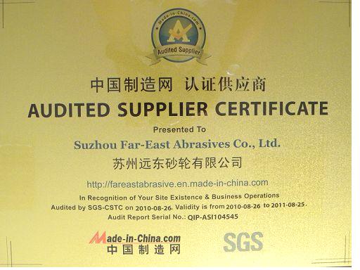 公司全資子公司­­­­-----蘇州遠東砂輪有限公司繼被中華人民共和國江蘇出入境檢驗檢疫局評為“江蘇出口工業產品生產企業分類一類企業”后,經國際知名產品質量控制和技術鑒定權威機構——SGS(通用公證行)評審、考核,遠東砂輪公司于近期正式加入“中國制造網(www.Made-in-China.com)認證供應商”行列,成為中國制造網的高級會員。該認證資格的獲得,是遠東砂輪公司強大綜合實力(特別是產品出口、品管體系等方面優勢)的有力證明,為使公司成為國際客商首選的合作企業提供了優勢平臺,從而為遠東砂輪公司進一步拓寬國際市場、實現外銷上規模再添一份綠色通行證。